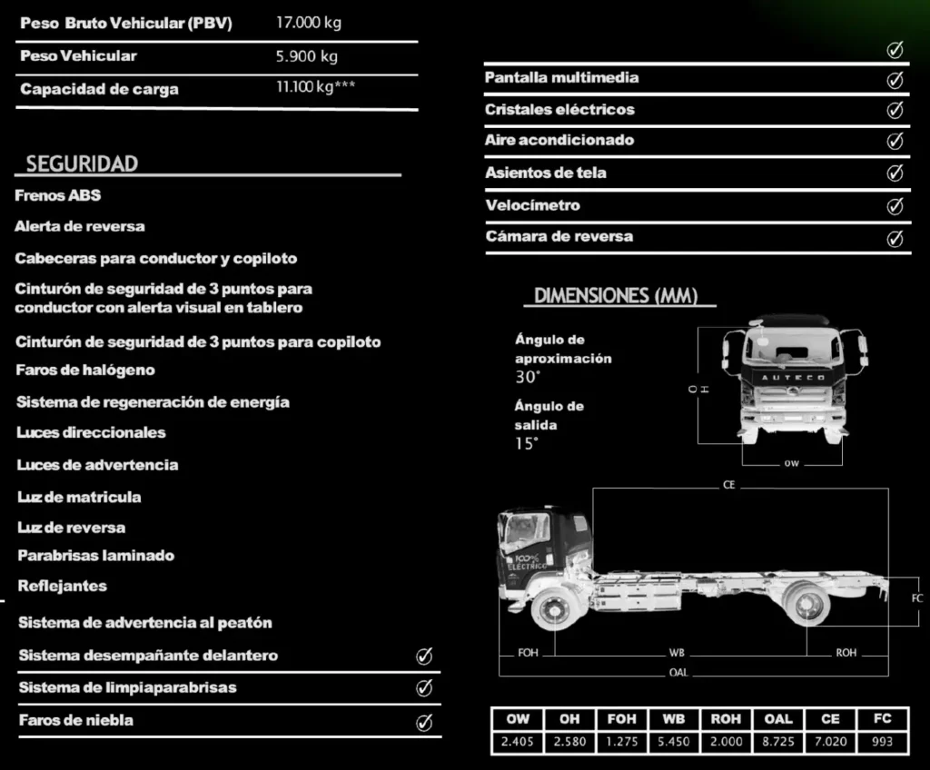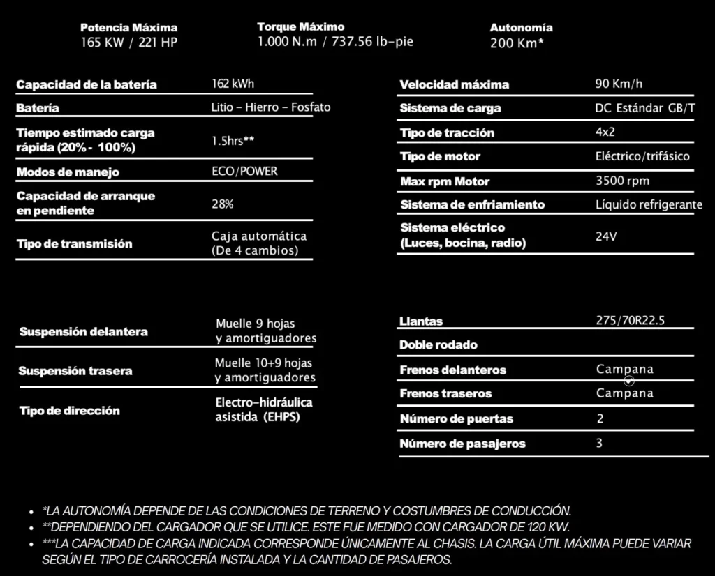 Propulsión 100% Eléctrica: Cero emisiones, operación silenciosa y un mantenimiento radicalmente más simple que los camiones diésel.