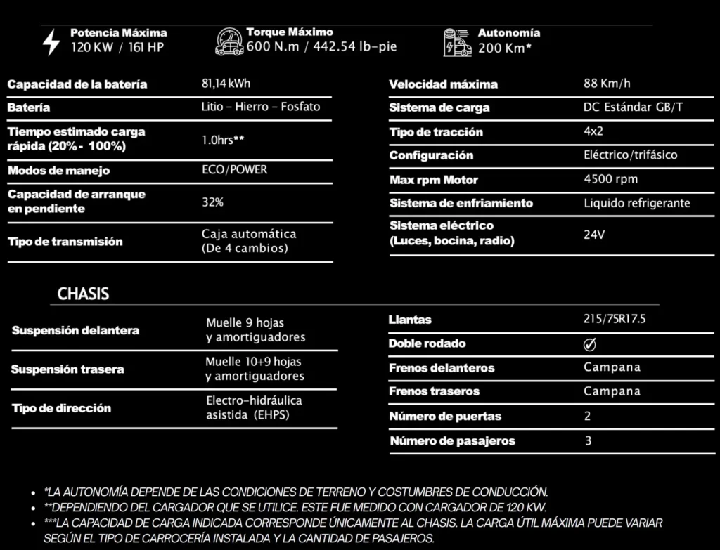 «Podrás seleccionar el tipo de caja y cambiarla de automática a manual, característica ideal cuando se trata de cargas pesadas. Una cualidad que no te brinda ningún otro camión eléctrico del mercado.»